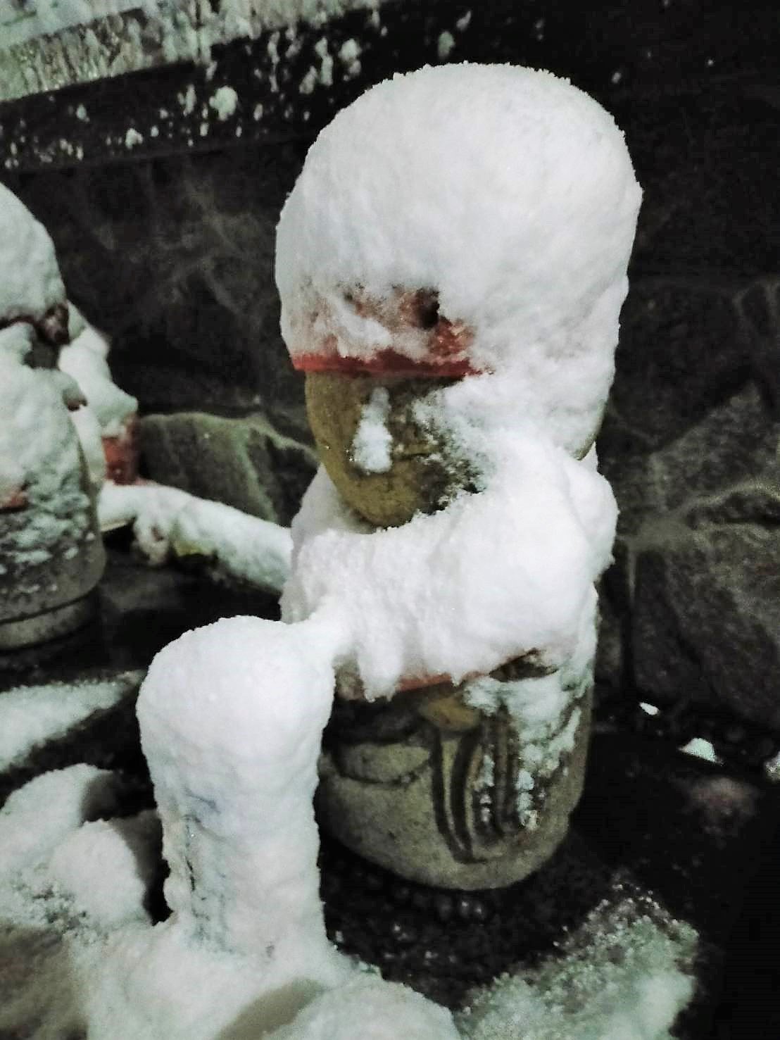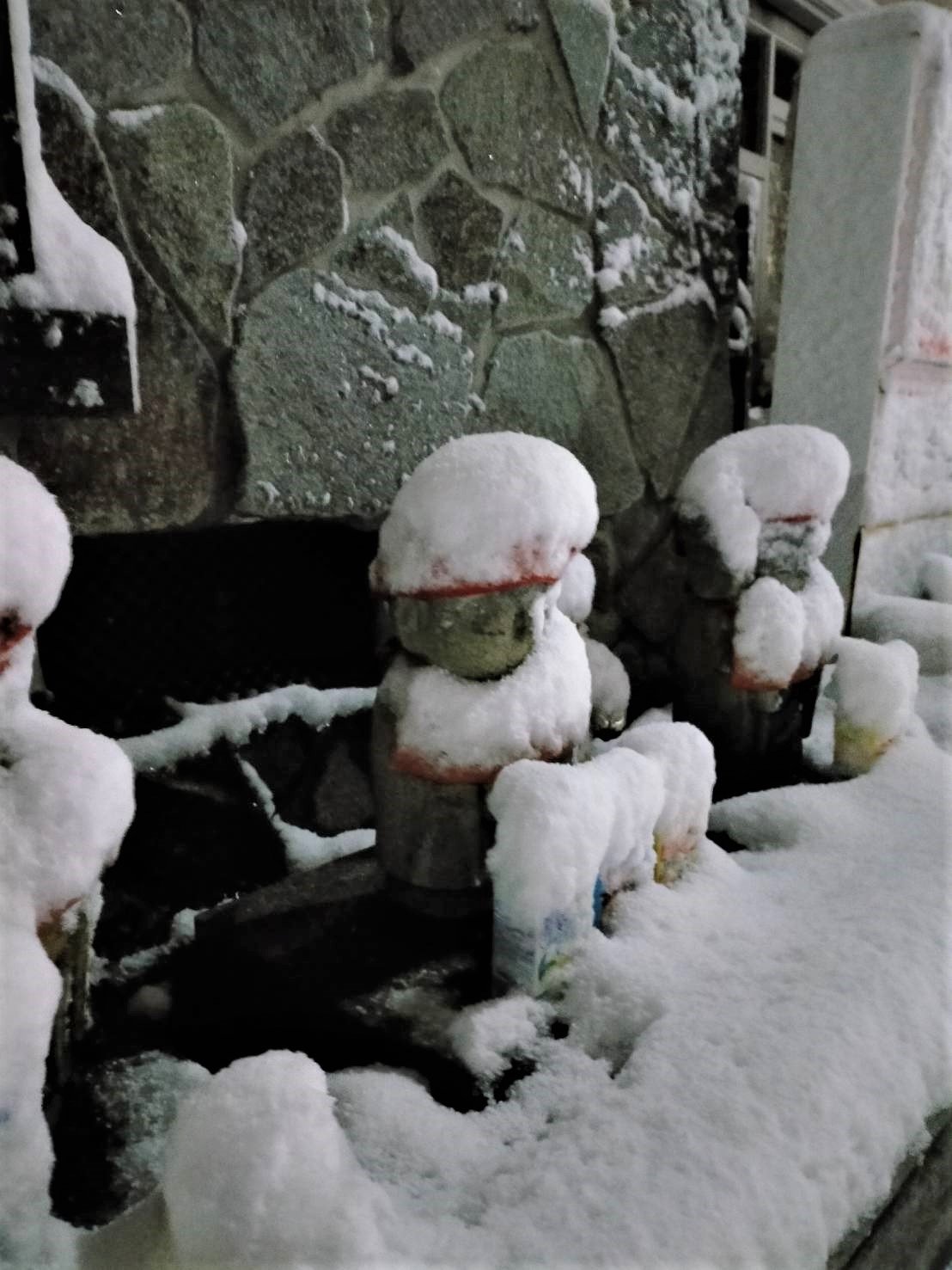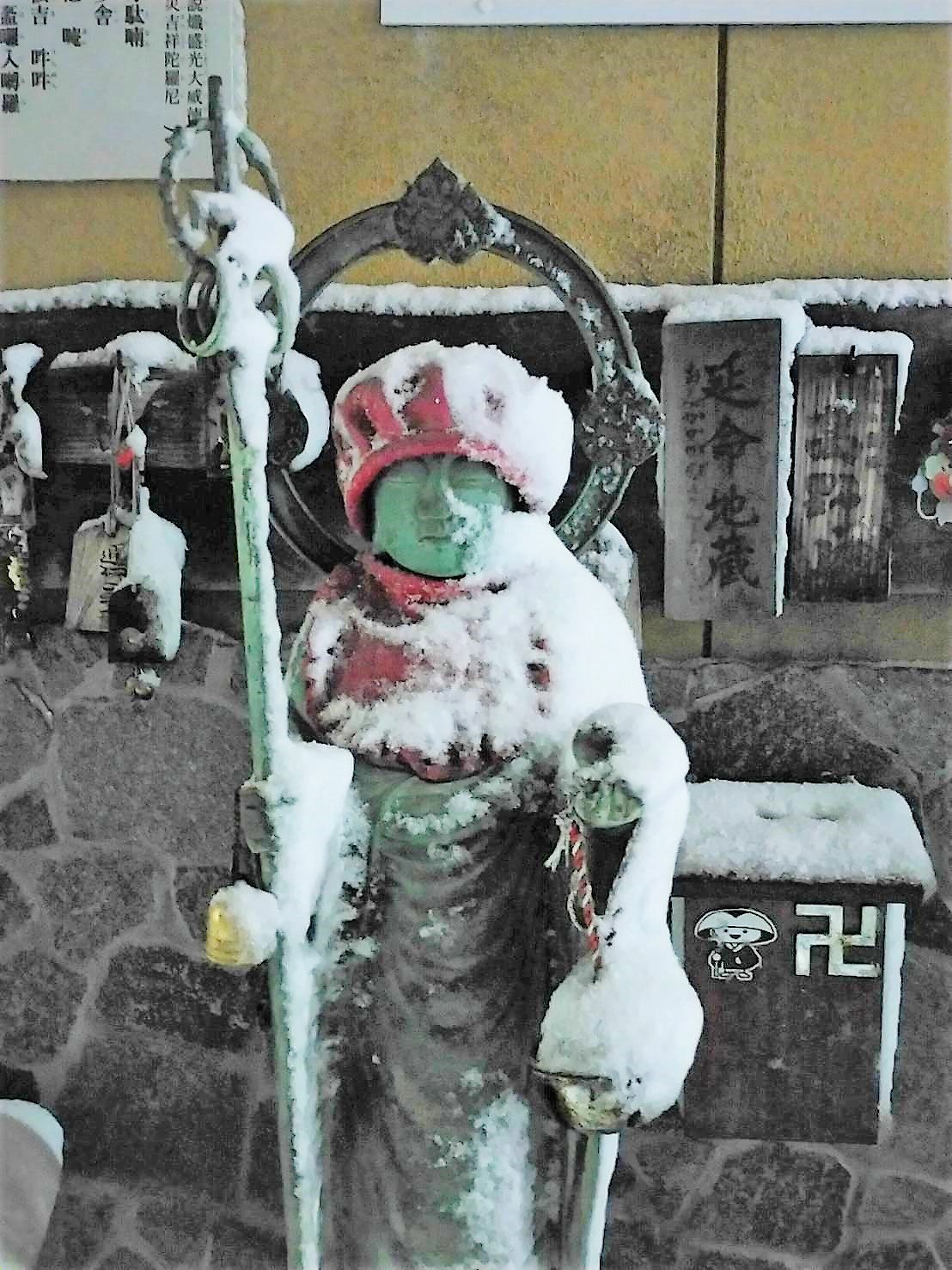 年末から寒波の襲来でお地蔵様も雪化粧されています(2021.1.1)