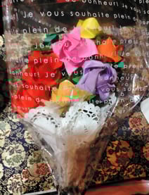 ◎折り紙で作られた「薔薇」の花束です。わざわざ遠方まで習いにいって、お供えして下さいました。