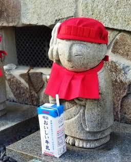 長幸寺初代住職のご命日に、お地蔵様のお帽子とよだれ掛けを新しくしました。先月のお地蔵様の日に頂いたものです。好物をお供えし、先代を偲ぶ一日となりました。   (21.6.17)