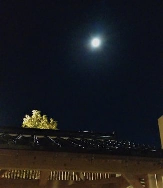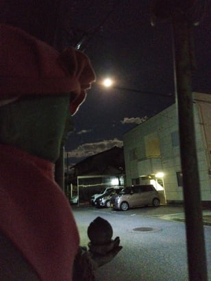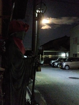 寺の玄関や近くの図書館、何処に行ってもつい探して、立ち止まり見上げてしまう、お月様は不思議です。(21.09.21)