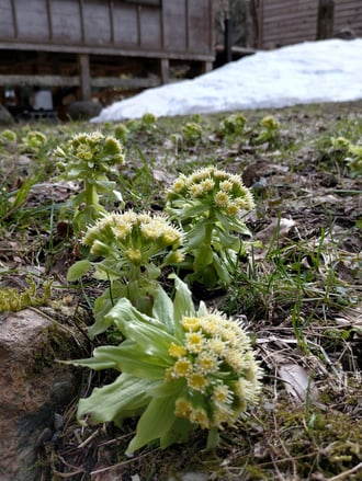 吉野谷別院に行ってきました。まだ雪が残り肌寒い中でも、日当たりの良い所にふきのとうの花が咲いていました。マイナスイオンをたっぷり吸収し、最高のリフレッシュができました。 (2021.03.26)