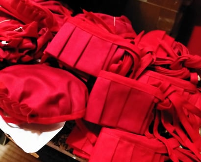 ◎5月24日のお地蔵様の日に合わせて、六地蔵さまのお帽子とよだれ掛けをたくさん届けて頂きました。有り難い限りです。